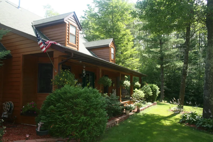 Beautifully maintained 5 BR, 3 BA cedar sided country home with 16.38 acres. 2 car attached garage and an additional 3 car detached garage. Main floor master bedroom with master bath, wood burning fireplace in living room, breakfast nook, dining room off kitchen, 3 season porch, covered deck. Lower level family/rec room with cozy gas fireplace & large storage area. Access area to put a boat in Callahan Lake. You'll love the great nature trails, gorgeous landscaping and fenced in back yard.