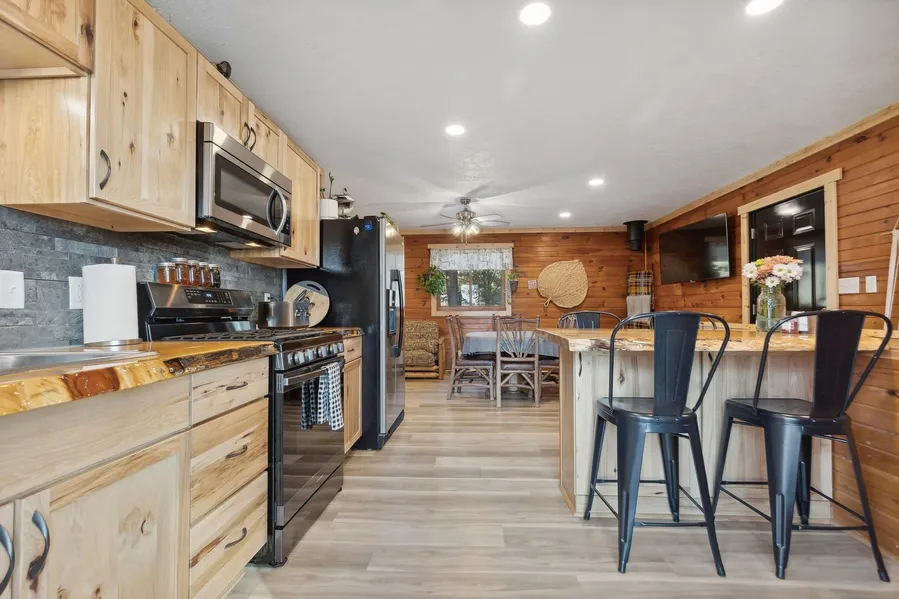 Exceptional vacation home and rental property on Sand Lake! This home boasts a charming floorplan with 4 bedrooms and 2 bathrooms, set amidst natural beauty on over 2.6 acres. The home has a completely updated interior with breathtaking views and towering pines. It is an escape you can truly appreciate in person. Featuring 100 feet of sandy shoreline on Sand Lake with an included dock, this property offers direct access to Wisconsin's vast ATV and Snowmobile trails. It has been a highly successful short-term rental, with an average nightly rate of $430 and over 20 5-star ratings, guaranteeing a solid return on investment.