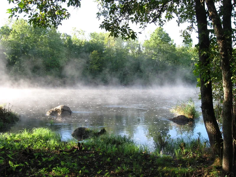 Vacant wooded lot set up as a home site. Gorgeous view of the Chippewa River only 130 feet away down the camping platform. Electric, well, and septic system already installed. Great muskie and smallie fishing from river or at the dam with newer boat launch, swimming, kayaking, many ATV trails, tubing, deer hunting on property or across the road, hiking trails on the property and vicinity and wildlife viewing. 20 minutes to Hayward, WI - the Muskie capital of the US. Very peaceful and tranquil.