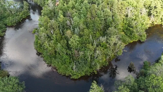 This exceptional Namekagon River lot is conveniently located within five minutes of Hayward. The property features a densely wooded landscape offering both privacy and a diverse selection of trees. Situated on a peninsula, the lot provides a panoramic view of the river from three sides. Residents can appreciate the abundant wildlife, picturesque river vistas, and the calming sounds of the flowing water.