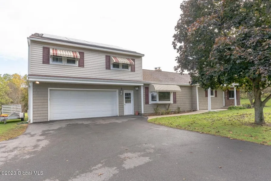 3-bedroom, 2.5-bathroom home situated on1.15-acres with an in-law suite and inground pool. The large upstairs suite can remain a separate living area with the existing kitchenette or transform to a larger family room. Perfect for many scenarios. It has both a private exterior entrance and access from the interior. The large living room with a cozy gas fireplace is central to the home with a slider leading to a patio and 2-tier composite deck overlooking the pool and sprawling grounds. Generate your own electricity with the Tesla solar system. 2 year old roof, replacement windows throughout, newer propane boiler, walkout basement & water treatment system. Scotia-Glenville schools, don't miss the opportunity to make this remarkable property your ow