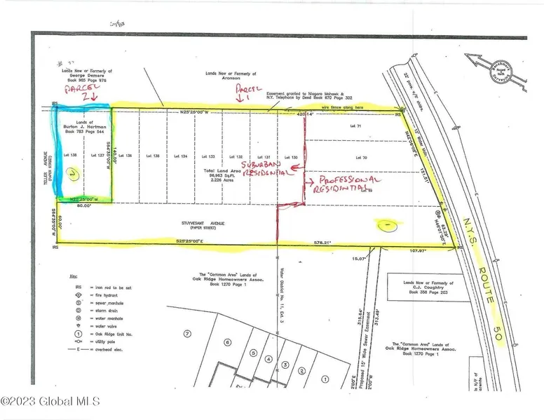 Two parcels totaling 2.48 acres being sold together. Front portion along Rt 50 is zoned Professional Residential, rear is Suburban Residential. See documents for permitted uses. Good potential for multiple units or home based business.