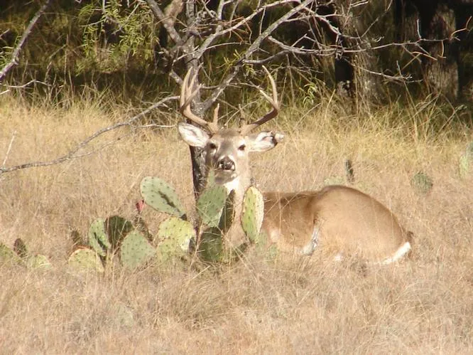 Some of the ranch has been cleared of the under brush and exposing the live oaks,mesquite,some cedar and other hard woods around the ranch.Thus making plenty of Native pasture, a little pear and a few rocks. This ranch has lots of cover for the wildlife such as whitetail deer,turkey,some quail and varmits.