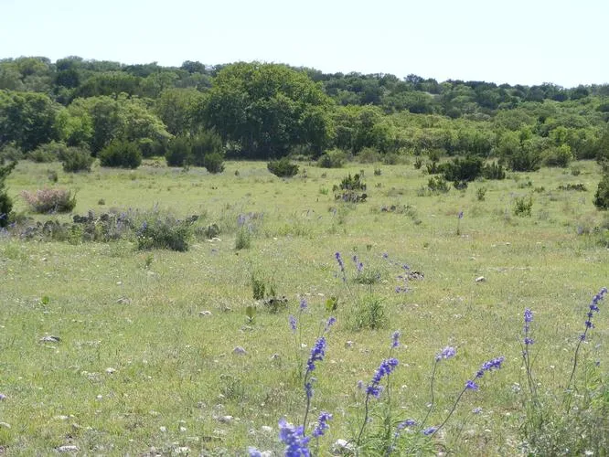 Terrain: Rolling liveoak covered hills sloping into large, grass-covered draws with scattered