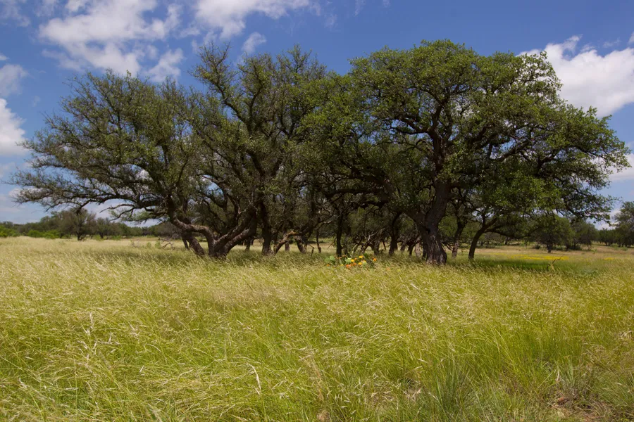 Terrain: ABSOLUTELY some of the most beautiful liveoak country in Schleicher County or anywhere. Large valleys covered with large liveoak and moderately rolling terrain. All pastureland with liveoak motts, and mesquite cover with native grasses and limestone outcroppings. Cross-fenced into 2 pastures.