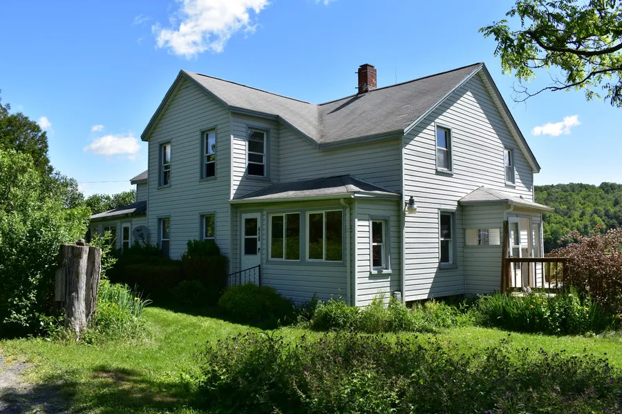 This Farmhouse sits on beautiful 5 acres. Has GREAT view from deck, new windows, electrical panels, septic. Land is perfect for farm animals. Four car garage, open 3 sided barn for storing hay or farm equipment. Need to take a look at this one!