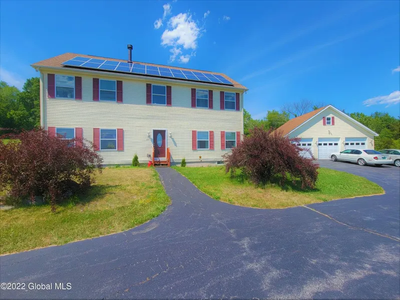 Must see! Is this 16 yr. young classic Colonial. Very spacious w/ 3 bed & 2.5 bath. Cozy wood burning fireplace, mudroom, first floor laundry and a huge walk in pantry. Beautiful grand entrance with vaulted ceiling in the foyer & brand new carpet throughout. Upstairs master. Lrg stair landing can be office. New fully finished basement with a full bath, bed, office & kitchen with family room and an electric fireplace. Perfect in law suite or just a wonderful second family area, all with a separate entrance. Oversized 3 car garage with pellet stove, & lots off above storage. Solar panels on home & owned inground propane tank. All sitting on a beautiful spacious lot, great backyard with 1 yr. old above ground pool. Quite and tranquil location in North Acres Estates. Close to snowmobile trail.