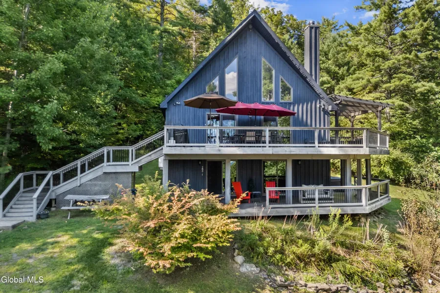 Discover your own 11-acre private retreat just minutes from Mine Kill State Park, three ski resorts, and endless hiking trails. This spacious 3-bedroom, 3-bath home offers flexibility as a full-time residence, vacation escape, or Airbnb investment. Step inside to an inviting, open layout with multiple gathering spaces, a cozy wood stove (2021), new flooring (2021), and a versatile lofted third level. Recent upgrades include refreshed bathrooms with new vanities, lighting, and faucets (2023). For convenience, the home is available fully or partially furnished, with most furniture less than five years old. The kitchen and laundry have been modernized with updated appliances-fridge (2020), washer (2020), dishwasher (2021), and dryer (2025)-plus an on-demand water heater, all new interior doors, and a resurfaced driveway (2019). Outdoor living shines with a two-level wraparound deck, expanded in 2020 with new stairs and exterior stain, perfect for entertaining or simply soaking in the wooded views. A relaxing hot tub (2020), oversized two-car garage with workshop space, and small pond (in need of TLC) add even more value. With additional street frontage, there's potential for future building as well. Whether you're seeking a year-round mountain home, a weekend getaway, or an income-producing property, this retreat truly has it all. There's currently no short term rental restrictions in place.