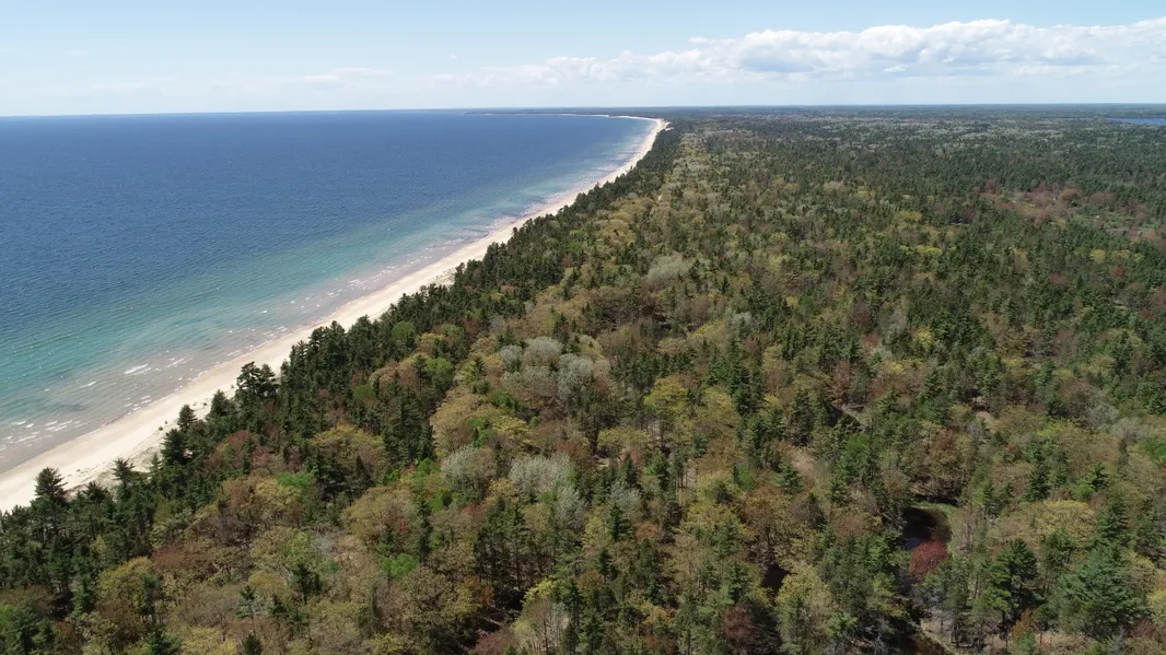 On the Top of Lake Michigan you will find one of finest waterfront parcels anywhere. The location provides a gorgeous southerly view with the occasional freighter passing by. There is so much to enjoy with the incredible qualities this property has to offer, but our favorite is the deep and plentiful sugar sand! The beach goes for miles in either direction and offers some of the best recreation you will find anywhere. This parcel has 403’ of water frontage and is 2.32 acres and has a good route to the quality building site which is elevated and will offer excellent views over the front dune area. The beach is wide and the sand continues well beyond where anyone would venture by swimming or paddling. The predominant trees are red oak, red pine and white pine and the forest is mature and majestic and the upper limbs are often visited by the many eagles in the area. The access is by a priva...