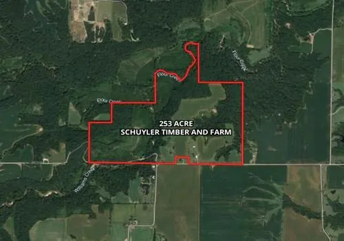 The property is located in west central Illinois 48 miles north east of Quincy, IL and 89 miles north west of Springfield, IL. The land has some rolling hills, featuring approximately 53 tillable acres of farm land inside 200 acres of timber, with 4600 feet of frontage on Center road.The Productivity Index for the tillable acres is 117.9.