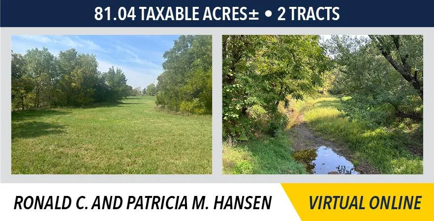 The Hansen farm will be sold on a price per acre basis, based on taxable acres. Both tracts will be offered through the marketing method of Buyers Choice, whereas the high bidder can elect either or both tracts for their high bid. If the high bidder does not elect both tracts, then the remaining tract will be offered. The tracts will NOT be offered together at the conclusion of the auction.
