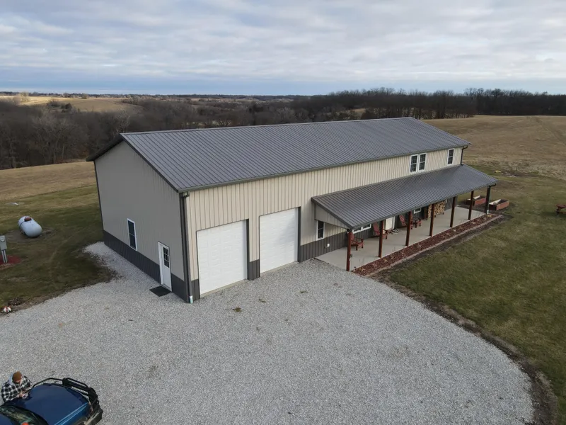 Located North of Glenwood, and just a few miles south of the Iowa border lies 60 acres with a stunning Barndominium. Built in 2018 this Barndominium offers all the quality's one would expect in a forever home. Radiant in floor heat in the house and garage. Tankless on demand hot water heater, spray foam insulation and comes with all appliances. Mini split units for heating and cooling as well. Offering 4 bedrooms, 3 bathrooms you will have ample space for the family or entertaining guest. There is also an older barn as you come in the driveway that offers additional storage for equipment. Good fences in place as well. For the outdoorsmen this is one of the best deer and turkey hunting properties anywhere in North Missouri for its size. I personally would put this farm up against any other 60-acre parcel for hunting! The history tells it all. Having a 179" mega giant killed off of it in 2023. The seller has a good trail camera history of the same deer showing year after year. Meticulously laid out there has been a lot of thought going into this farm. Currently there is around 5 acres of food plots put in every year. Comes with a Banks Stump 4 vision phantom hunting blind. All furniture is negotiable as well as the Kawaski mule side by side. Give us a call for your own private showing of this turnkey property.