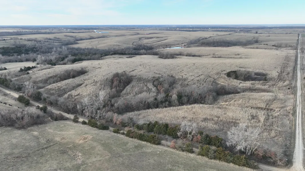 295 acres. This tract features approx. 205 acres tillable, balance in timbered draws, waterways, pond and shed. Access off of Highway 202 to the west