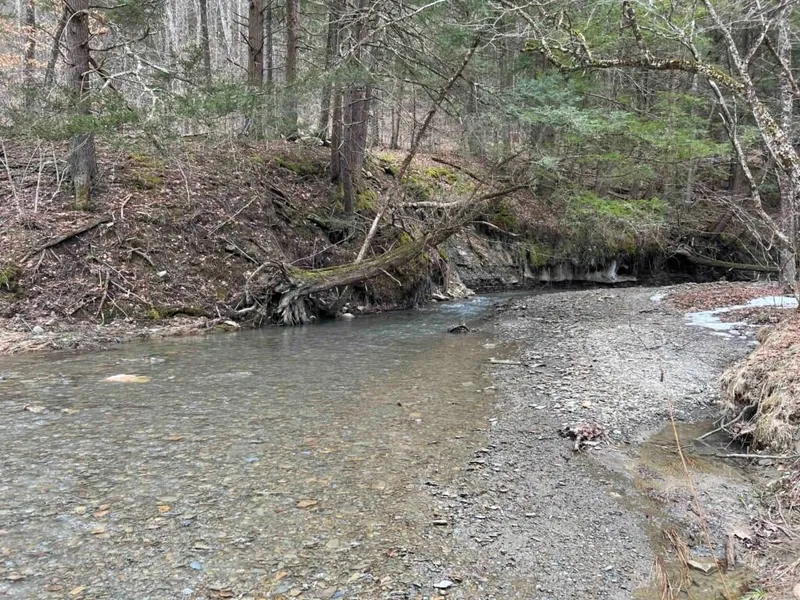 This diverse property is located on Sexton Hollow Road which is a paved, town maintained road. As you enter the property from the road, the topography is rolling and is gently sloped down from the road's edge to the creek that crosses the property which is almost parallel with the road. There are two areas that are cleared along the road that make it easy to park and access the property. Along the rocky bottom stream, there is a cleared area that would make a nice spot to pitch a tent or build a small cabin and enjoy the tranquility of the nature that surrounds you.