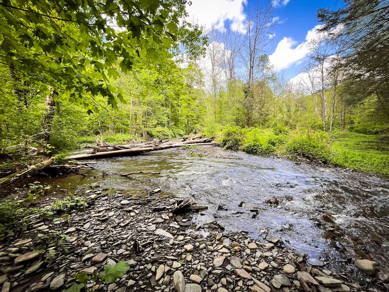 Set among a backdrop of deep woods, rolling topography and flowing water, this Cayuta Creek retreat in the town of Catherine offers a chance to own land and lifestyle. With approximately 300 feet of year-round, maintained road frontage on Oak Hill Road and power nearby (though not directly along the frontage), the property is as accessible as it is private. Cutting through the core, Cayuta Creek's clear waters carve their way along the bedded slate and smooth river stone, creating a rugged and beautiful corridor of deep pools, running riffles and pristine pocket water. Though this section of the creek isn't stocked, it's long been whispered that trout from stocked sections find their way here-and the seller backs that claim with more than a few tales of tight lines from well-placed flies. The forested expanse is equally inviting. A mix of maple, oak and scattered conifers blankets the land's folds and contours, providing excellent cover for wildlife and an ideal setting for hiking, hunting or quiet exploration. A small sugar shack and wood shed stand ready for your next maple boil, adding a timeless charm and purpose to the property. To the east, more than 11,000 acres of Connecticut Hill State Forest rise up, offering unmatched access to one of the largest wild spaces in the region has to offer. The Finger Lakes Trail passes just feet from the boundary, opening the door to days-long adventures on foot. Located less than 30 minutes from both Ithaca and Watkins Glen, this is a place where convenience meets spirits wild with whispers of pursuit and promise of a place to unwind. Whether you're looking to build (with town approvals), camp, hunt, fish or simply unplug, this adaptable land stands ready for your vision. Contact us today to learn more about how to stake your claim and write your own story in the off Oak Hill.