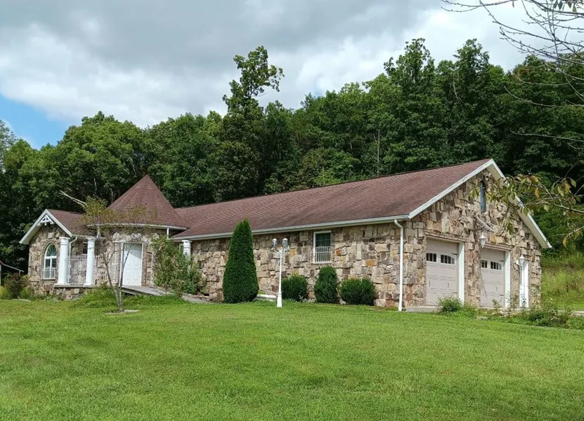 Custom built ranch home with stone veneer exterior featuring a turret on roof at front entrance. Main bedroom has a terrific main bedroom bath with comfortably deep bathtub, tile shower and walk-in closet/laundry room. Walkthrough Pantry with plenty of food storage. Nice sized 2 car attached garage with 2 entrances directly into the house, plus an approximately 32' X 40' detached 3 car garage with separate work or hobby room. Partially fenced with wood, brick and metal with driveway gate. Scenic views with trees, shrubs and nature.