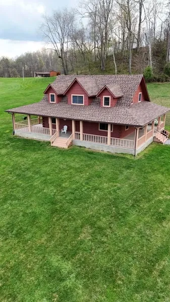 3 Bedroom/ 2 Bath Amish built log cabin on over 6 acres! First time on the market! Craftsmanship and quality are evident throughout the interior and exterior of this magnificent cabin style house. This peaceful retreat features a huge covered porch on 3 sides of the home for relaxing or entertaining while taking in the views. The kitchen, living, and dining areas are open to one another. A bedroom w/en-suite bath, the 2nd bath, and a laundry closet complete the main floor. Upstairs you will find 2 nicely sized bedrooms w/walk-in closets separated by the landing which would be a great reading nook or office area. The property boasts several wooded acres, a natural spring, a creek, a peach tree, apple trees, and plenty of room to grow! There is a shed for storage or hobby space. The roof is new with transferable warranties. Protective covenants are in place to preserve property values in t...