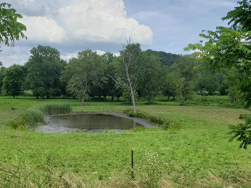 Working farm, ready for livestock. This 45 acre property is bordered on one side by Hales Creek and has 1200 feet of frontage on Lick Run. The land is flat, and fully fenced with divided pastures and hayfields. There are 2 ponds that currently water livestock. The large barn is divided between hay storage and run in for animals. There is a water tap in place with a main run into the barn. There are several building sites if building a house is a need.