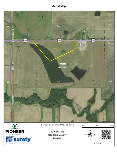 Prime lake front home building site. Lake consists of 10 M/L acres. There is approximately 12 feet of rock around the parameter of the lake. Makes access to the lake more convenient. Rural water and electricity available. Scenic rural property. Only minutes from Memphis, Missouri. Memphis Memorial Airport has a runway with a dimension of 3,300ft X 60ft.. With a weight bearing capacity of single wheel 13,000 lbs. Lake front acreages of this size are hard to find in the country, are hard to find in the country.