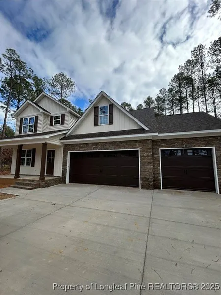 Beautiful 3 bedroom 2.5 bath home WITH finished bonus room AND STUDY! Nestled in the lovely Deercroft Gated Golf and Lake Community! Open floor plan perfect for entertaining with elevated finishes. Precision Construction and Restoration proudly offers stunning countertops throughout, stainless steel appliances and tile backsplash in the kitchen also boasting an island for additional countertop space. Primary bath features a large tile shower, separate soaking tub and dual vanities. You will feel the difference with the elevated finishes in this one! Enjoy the brisk fall evenings on your covered back deck and all of the additional storage of a third garage! Deercroft Clubhouse with pool, playground, courts and lake amenities! Easy commute to Ft Bragg and Southern Pines! .5% with use of preferred lender, Jeremy White, Southern Trust Mortgage.