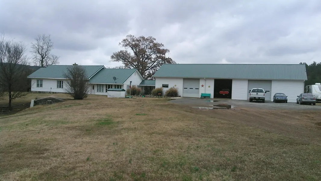 This picturesque ranch lies a short distance of 2.5 miles down a graveled County Rd south of Waldron. Pipe fencing greets you on the front of the ranch and all new fencing has been installed all around. A portion of the farm is sectioned into 20 sections with each having its own individual pond. Nice road frontage. The ranch sports two lakes, one is a 22 acre watershed lake and the private 8 acre lake is situated behind the dwelling and offers nice cement ledges, boat dock and pier. Pastures could easily be irrigated from the lakes to improve grass production and increase your cattle herd. The improved pasture supports an annual hay crop of apprx 1000 bales and services 250 head of cattle at this time. Two creeks and marketable timber. The vinyl sided home has been newly remodeled to include a new den, add'l bedrooms, new kitchen with cherry cabinetry, solid surface cabinet tops and new stainless steel appliances, CH/A & FP. The large spacious family room with open concept to the custom kitchen allows for family to share in all activities. The beautiful rock fireplace in the den creates a cozy getaway if needed. Tons of windows in the home to allow you to view the spectacular Ouachita Mtns. There is a large 100x100 equipment barn with individual pens for poultry or small animals and large hay barn, cellar and 3 car garage which also has living quarters. Also on the property is an older 3 BR 1 BA rock home featuring CH/A and older barn which could be renovated for guest quarters, farm hand or rental property. This property joins the National Forest Lands and Green Bay Packaging and offers abundant wildlife opportunities of deer, bear, quail, coyote, turkey and much more. Apprx. 470 acres of open ground. Beautiful panoramic views of the Ouachita Mtns all around.
