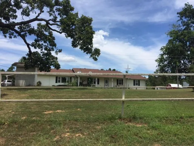 10 acre mini farm with spacious vinyl sided home featuring 3182 sq feet, 2 car garage, large shop/barn and RV shed. Pipe fencing, 2 ponds, storm shelter and loafing shed. Rural water to home and nice covered custom brick BBQ grill pavillion out back. Must see to appreciate. Minutes from town - corners a county road. Additional 25 acres also available for purchase for total package of $195,000.