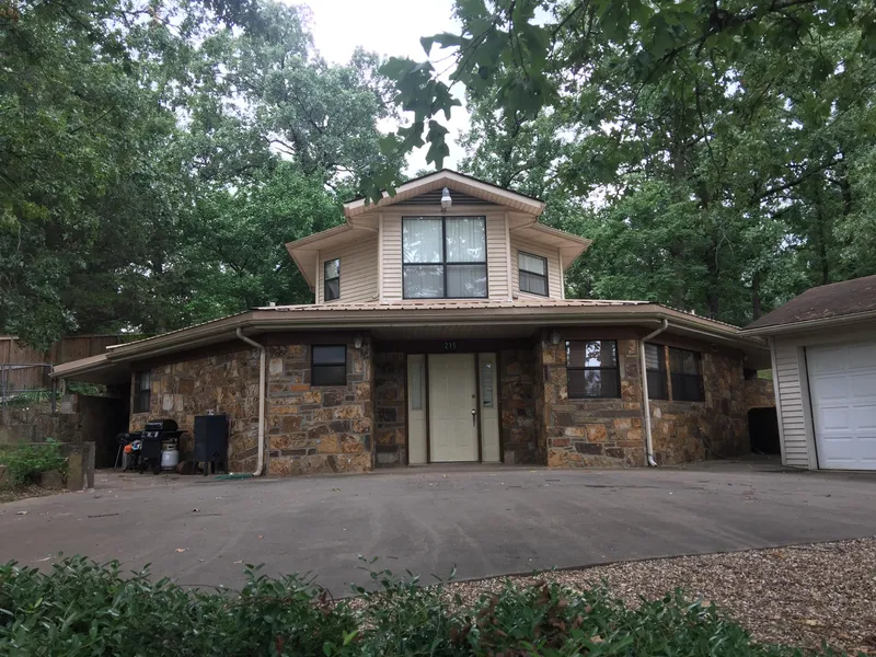 Unique octagon shaped home with new metal roof, new HVAC system and new wood look ceramic tile. Spacious with 3 BR 2 BA downstairs and large bonus room with full bath upstairs. Large WIC closets, beautiful exposed wood beams in vaulted ceilings. Detached 2 car garage, paved drive and nice backyard with no close neighbor behind. Large mature shade trees. Must see to appreciate. Located in popular quiet neighborhood. Call for your private showing today and let us help you with 100% zero down financing on great fixed rate mortgages.