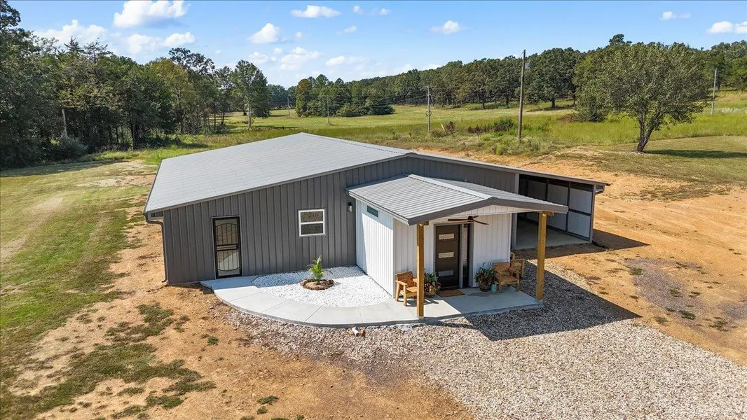 Welcome to country living at its finest! This newly constructed home, built in 2023, was thoughtfully designed for ease of mind and low-maintenance living. With 2,064 square feet, the home offers 3 spacious bedrooms and 1 bath, along with an open-concept living area that enhances its inviting atmosphere. Property featuring higher-end finishes, including quartz countertops and luxury vinyl plank flooring. As a Barndominium, this home checks all the boxes for modern, rural living. Situated on a 44-acre parcel, the property provides plenty of space to enjoy nature and the surrounding wildlife. With an oversized pond and a creek running along the edge of the property, you'll have ample resources to live off the land. Whether you're sourcing your own food or hunting, this property supports a self-sufficient lifestyle. The home features one 12x50 covered concrete porch overlooking the pond ma...