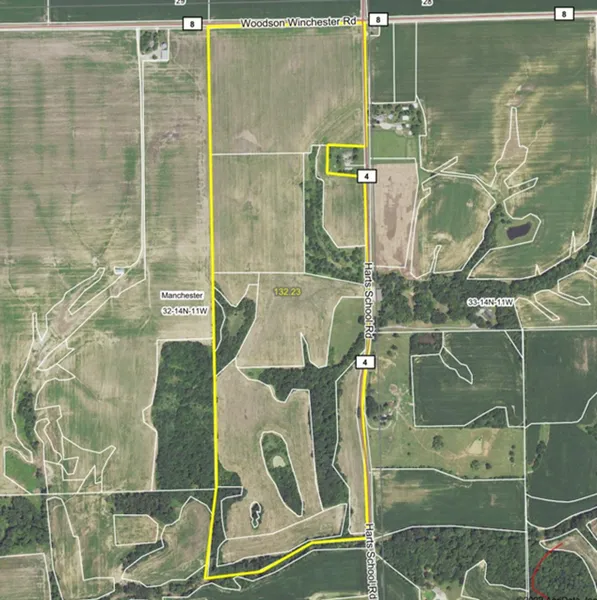 A terrific mixture of income generation and recreational enjoyment, this 132.23 acre farm in Eastern Scott County, Illinois is a great find! The farm entices buyers with nearly 100 tillable acres (119.1 overall PI rating) of which 36.13 acres are Class A Ipava, Lawson, and Virden soils. The remaining acreage provides wooded edge for the outdoor enthusiast. Visionaries will enjoy dreaming up possibilities for the well-maintained open three acres along Harts School Road whether a future homesite or other structure (utilities run along Harts School Road).