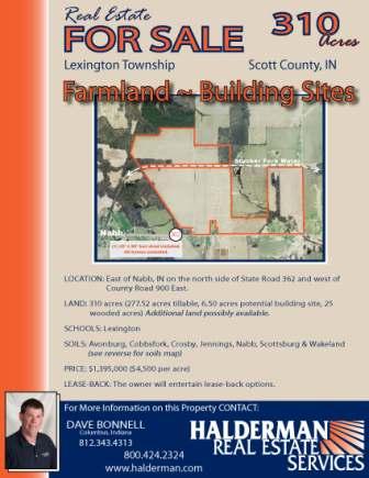 310 Acres (277.52 acres tillable, 6.50 acres potential building site, 25 wooded acres). Additional land possibly available.