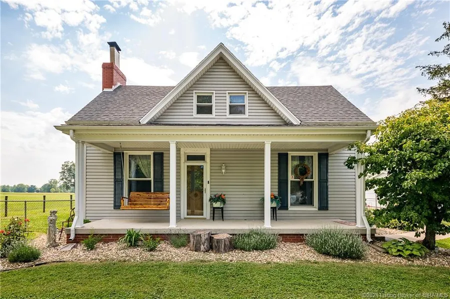 WOW ! Check out this farmhouse tucked away in the heart of Scottsburg, wait until you see what all this home has to offer! Sitting on just under 5 acres, this three bedroom, two bathroom home is beautifully maintained. Offering over 2,000 square feet, this home has a farmhouse charm with modern updates. Spend your summer in the in ground pool that comes with its own pool house with a kitchen and bathroom, or enjoy your evening on the covered front porch, or sit inside the enclosed side patio. Included with this charmer is a detached 2 car garage, a barn with heat, electric, horse stalls and a workshop for all of your needs. If you are looking for that country home with land surrounding it, then look no more, this one will not last long! Sq ft & rm sz approx.