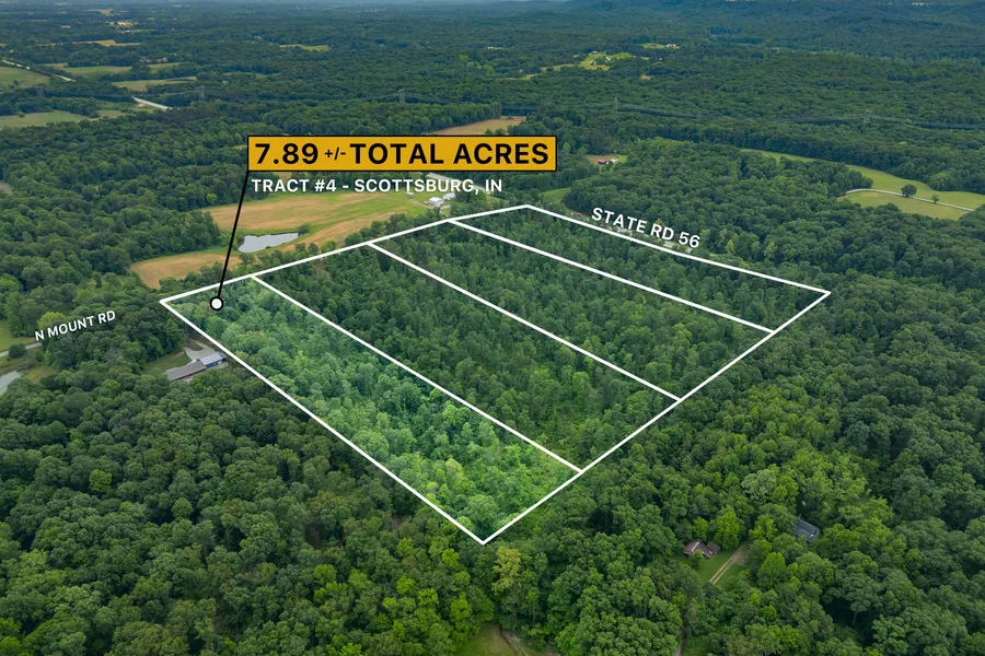 Tract 4 is 7.89 acres located off of 56 & North Mount Road just 10 minutes east of 65. Here you will find not only this tract of ground but 3 additional available properties as well. This wooded property offers water, electric & fiber at the road & would make a great place for your new home. Scottsburg itself is home to Hardy Lake State Park along with many other parks, caves & lakes. Columbus, Seymour, Bedford, Sellersburg, Madison, Bloomington & Louisville are each less than 40 minutes away! Owner financing available, survey to be provided by seller.