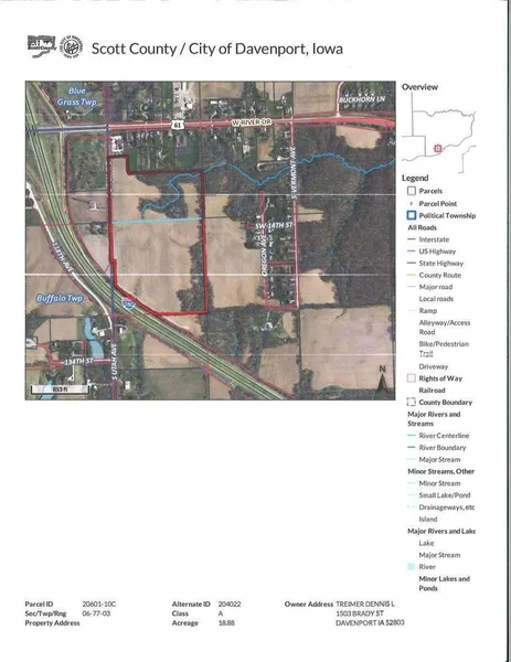 Quality parcel of tillable cropland and timber on S Utah Avenue in Davenport. Land is located just off US 61 near I-280 and US 61 interchange. High quality and good laying cropland with good productive soils and average CSR2 rating. Great land investment opportunity with long term growth and potential for development. Farm is leased for 2023 crop year. Possession is subject to tenants lease. Full legal description and aerial maps available.
