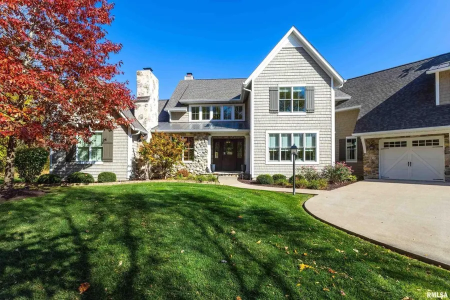 Welcome to a luxurious 1.5-story Craftsman-style home on 9.58 scenic acres that seamlessly blends craftsmanship and thoughtful design. Enter a sophisticated space with a light-filled 2-story great room featuring exposed beams, built-ins, and fireplace. A private living room and dedicated office with wainscoting offer intimate retreats. Two primary bedrooms with en suites provide a retreat-like experience. The open kitchen is a culinary haven with a central island, walk-in pantry and informal dining area. A separate home office, screened porch, laundry room, powder room and back entrance with lockers and storage closets round out the main floor. Upstairs, three bedrooms with private en suites and an open den area provide comfort and versatility. An unfinished space over the garage allows for expansion. The walk-out basement is an entertainment haven with a family room, wet bar, billiards ...