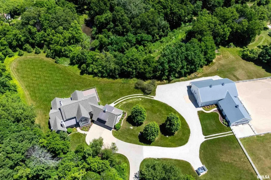 Welcome to a luxurious 1.5-story Craftsman-style home on 9.58 scenic acres that seamlessly blends craftsmanship and thoughtful design. Enter a sophisticated space with a light-filled 2-story great room featuring exposed beams, built-ins, and fireplace. A private living room and dedicated office with wainscoting offer intimate retreats. Two primary bedrooms with en suites provide a retreat-like experience. The open kitchen is a culinary haven with a central island, walk-in pantry and informal dining area. A separate home office, screened porch, laundry room, powder room and back entrance with lockers and storage closets round out the main floor. Upstairs, three bedrooms with private en suites and an open den area provide comfort and versatility. An unfinished space over the garage allows for expansion. The walk-out basement is an entertainment haven with a family room, wet bar, billiards room, exercise room, sixth bedroom, covered porch and full bath along with a dedicated pet spa. An attached three-car garage with steps to the lower level garage offers ample parking and storage space. Beyond the residence, the property includes a heated stable with four box stalls, a wash stall, a tack room, half bath, laundry facilities, second floor and access to the exercise paddock and fully fenced pasture. Additionally, a multi-use barn facility with heated floors enhances the versatility of this estate. This residence is a masterpiece of comfort, style and functionality.