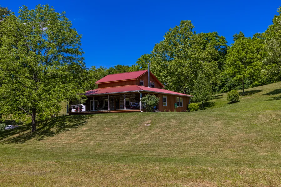 This could be your personal getaway! 30.21 acres located in Scott County; approx. 15 minutes from Toyota and 10 minutes from I-75 Exit 129. Spacious home with plenty of room to enjoy both inside and out. Woods, trails, pond, terrific picnic spot in the front; the scenery is so amazing! 3 bedrooms with primary on main floor; 2.5 baths; huge great room with wood burning stove; large kitchen with eating area; new carpet up the stairs and in upstairs bedrooms. The front porch runs the length of the home and is absolutely fabulous- the perfect spot for morning coffee, afternoon tea, and evening sitting!
