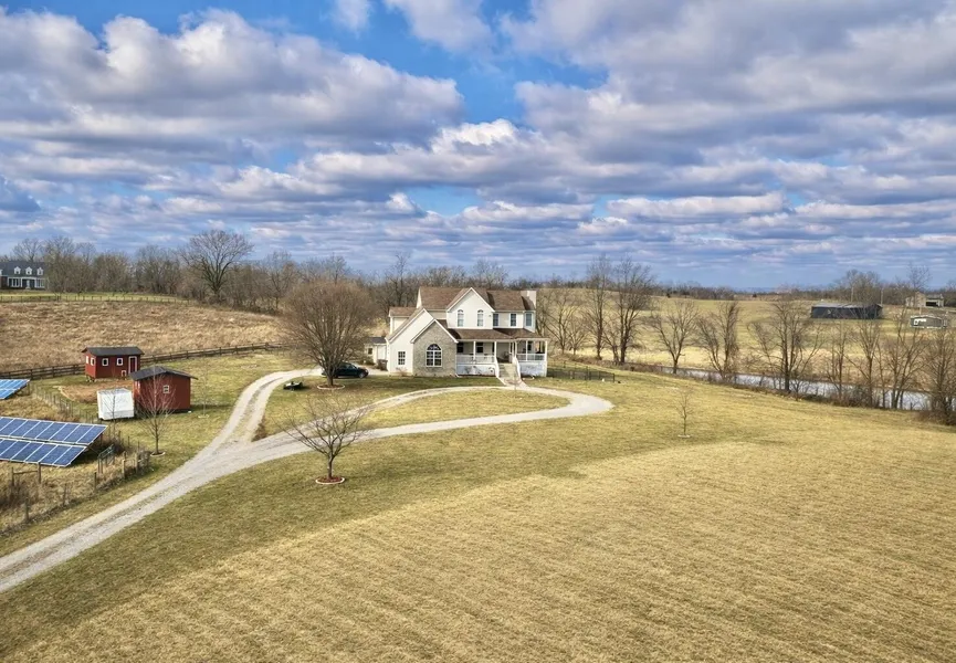 *Priced Below Recent Appraisal* Welcome to this stunning, spacious home set on 5 picturesque acres, offering the perfect blend of comfort, functionality, and peaceful rural living. With 5 bedrooms, 3.5 bathrooms, and over 3,500 sq. ft. of living space, this property is ideal for everyday living, entertaining, and hobby farm life. The open-concept living room, breakfast nook, and kitchen create a warm, inviting space for family gatherings and holiday celebrations. The main level also features a formal dining room, laundry room, and convenient half bath. Upstairs, you'll find three bedrooms, a full hallway bath, and a luxurious primary suite complete with a private bath, two walk-in closets, and generous storage throughout, including a hallway linen closet. The finished walk-out basement adds exceptional versatility with a family room, fifth bedroom, full bath, and a large pantry/storage room, perfect for extended family, guests, or multi-generational living. Outside is where this property truly shines for hobby farm enthusiasts. Enjoy a gated entrance, fenced yard, garden space, and fenced pasture ready for animals. Two well-built 12x16 outbuildings provide ideal space for a chicken coop, equipment, or feed storage. The heated and cooled garage with mini-split system is perfect for a workshop or hobby space. Solar panels offer added peace of mind during power outages while helping reduce monthly electric costs. Step out from the living room onto the deck that leads to a fenced yard and 24-foot pool, ideal for summer entertaining. Evenings are best spent relaxing on the wraparound front porch, taking in the pristine views and quiet countryside. With numerous updates and exceptional features throughout, this property is a rare opportunity to enjoy space, privacy, and a true country lifestyle, all priced below recent appraisal. Come experience it for yourself and make your country living dreams a reality.