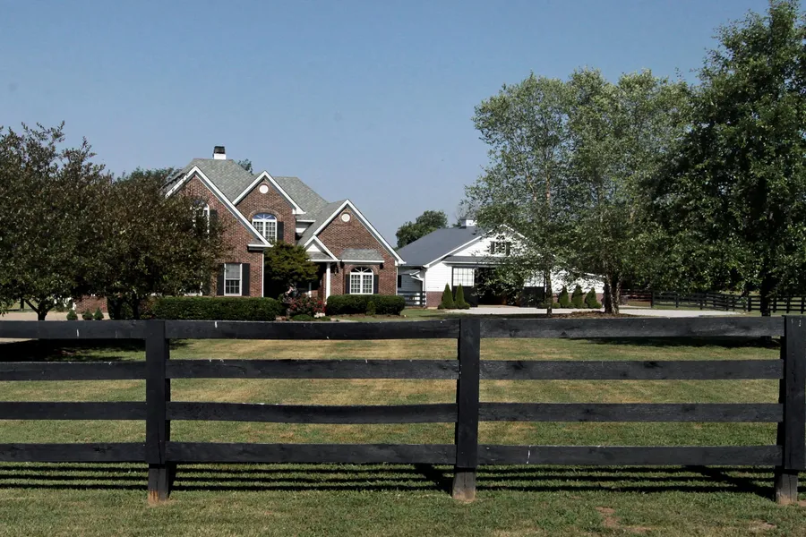 One of Central KY's finest and most unique small horse farms is now available! 10 min. to KY Horse Park, this 7.5 acre country estate is nestled in a scenic area just off Paris Pk. Immaculate home with fine appointments; 1st fl master suite with new tilework, well-planned kitchen and exceptional floor plan. Many large windows to bring in the views of the farmland and watch your ponies play! Backing to Elkhorn Creek, this one-of-a-kind farm is so well planned, you'll be amazed at the quality and care that have gone into the farm improvements. Fencing and barn 5 yrs. old, 2 paddocks, arena, 5 stalls, wash rack, warm room, custom doors and gates, automatic waterer, brick breezeway and many other great features. Large attached garage and detached oversized garage provide extra storage, workshop or many other possibilities. Fenced dog area, deck, lush landscaping...I could go on and on, but y...