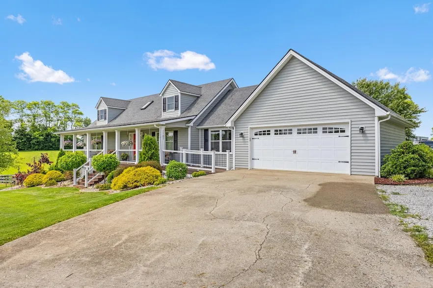 Beautifully updated home with a peaceful setting situated at the end of a private road. This property offers 9.13 green acres with rolling hills and 1 fenced pasture, Large 30x50 workshop insulated (Electric on secondary meter), 12x24 backyard shed and Chicken coop with automatic door. Home offers large front porch with ramp from the driveway inset lighting with immaculate landscaping equipped with irrigation drip system. Home features Alexa controlled chefs' kitchen with 9ft. Island, KraftMaid white cabinets with under mount lighting, soft close doors, Granite countertops, tile backsplash, 60/40'' deep sink with touch faucet, SS appliances, Pantry/laundry area designed to maximize storage space with slide-out drawers. Office/dining/ flex room between garage and kitchen has built in desk and reading nook with book shelves. First floor primary bedroom offers ensuite comfort height double...
