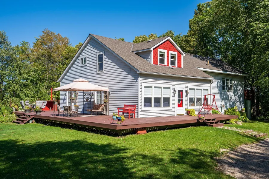 Enjoy the country-living feel, close to the Twin Cities! This beautiful, fully remodeled home still maintains its early 1900s charm. This home is settled on a 1+ acre private lot with lots of trees. Enjoy your private oasis on the wraparound deck or from the beautiful 3-season porch. The main level of this home features a bright & sunny sitting room as well as a family room, informal dining, and an updated kitchen with stainless steel appliances. Upstairs you'll find three bedrooms & a full bath, while downstairs is another bedroom & full bath, as well as a family room with a wet bar/kitchenette. A unique feature of this lovely home is the full in-law suite with access to the main home as well as a separate deck with private entrance. This second unit has 2 bedrooms and a full bath as well as a full kitchen. This lot features plenty of parking with a 3-car garage and additional covered storage space to the side of the garage.