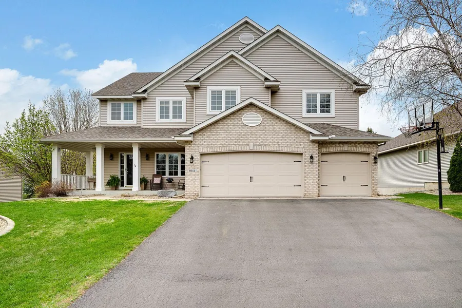 Stately 2 story in Hamilton Hills of Savage! Everything you're looking for in a spacious family home! Open/covered front porch, welcoming foyer, 2 story great room with lots of windows/sunshine, built-ins, stone fireplace & updated kitchen that opens to informal dining area plus separate/formal dining. Main level also has 1/2 bath, lots of storage in mud room off garage & nice sized deck which overlooks beautiful/private back yard. Upper level has 4 sizeable bedrooms with owners suite, laundry room & common bath (note brand new carpet in bedrooms). Huge walkout lower family room with bar area, 5th bedroom, office/den area & 3/4 bath. Walkout to amazing stamped concrete patio area in back yard! 2 parks just down the street & very close to shopping areas. See supplement for updates. Awesome home in great location! Come check it out! Pro photos coming 5/12/22.