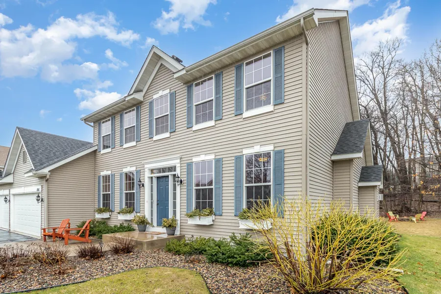 Available due to job relocation, this traditional 2-story home is conveniently located blocks from 2 city parks and minutes from Prior Lake's Sand Point Beach. Inside you'll immediately notice the freshly re-finished Southern Oak hardwood floors. Main floor offers office, flex room, spacious living room with custom built-ins. Remodeled kitchen with center island, Cambria counter tops and stunning custom cabinetry. A spacious mud room off the heated 3-car garage, separate laundry room and bath. Upstairs are 4 bedrooms, with a unique one with 2 steps down upon entry, allowing an 8' ceiling and impressive windows. Lower level with custom built ins, wet bar, gas burning fireplace, 5th bedroom and bath is an entertainer's dream. Large deck off back of home with flat yard, garden beds and backed up by trees creating desirable privacy. New furnace 2023, water softener and water heater 2022. Located closer to Prior Lake Schools, these students open enroll there.