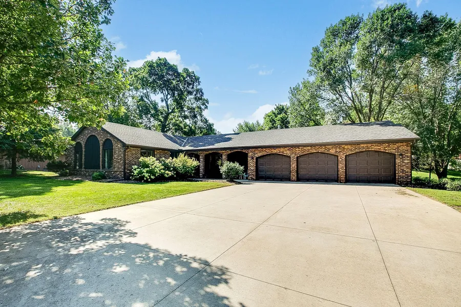 Sprawling, all brick walkout rambler situated nicely on a large/double lot in a beautiful & peaceful setting with mature trees. Wrap-around deck on main level with walkout patio below. Oversized 3 car garage is heated & insulated plus huge concrete driveway. Very spacious interior with over 4,000 sq ft. Super cool octagon family room on main level is open to kitchen & has 3 sliding glass doors out to deck plus brick fireplace. Good sized kitchen with peninsula, huge living/dining room & 3 BR's with large walkthrough owners bath. Laundry & 2nd 1/2 bath also on main level. Lower level has tons of space & designed for entertaining (or possible multigenerational living). Included are a 2nd family room with fireplace & walkout to back yard, large wet bar area, game room, 4th bedroom with egress window, 13 x 30 bonus room, a full bath & sauna room too (needs heater re-installed). New roof, furnace and AC unit this year plus updated windows. Nice, come check it out. Pro photos coming 8/24/23.