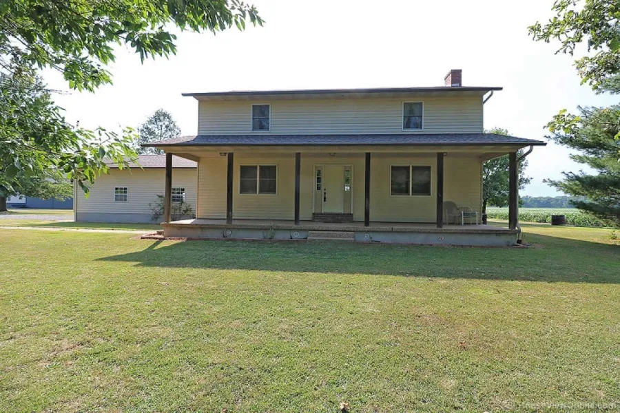 Located on 2 parcels totaling 5 acres, this package offers the best in country living. A 3 bedroom, 2 bath, two story home with large rooms, covered front and back porches, attached garage. There is a 60x90 Morton building, with a large beam for shop work, an office and a 30x60 concrete floor. Includes is a 42x60 building, a grain bin, 3 wells. Currently has soybeans on part of the land. Would make a great horse farm.