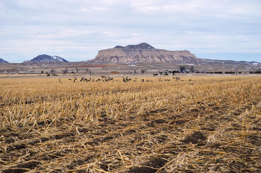 IRRIGATION: Water is provided by Castle Rock Irrigation. This irrigation system has one of the most Senior water rights on the North Platte River! The farm is irrigated in 2 fields. Water is delivered at the County Road at the southwest corner. Water runs from south to north. There is approximately 1200 feet of cement ditch and the balance would be surface ditch.