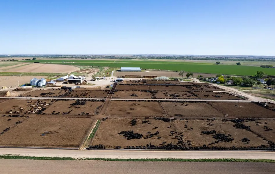 This 4,000 head feedlot has 27 modern pens of varying sizes, 20 of which have new waterers. The condition of the bunk line and apron is all updated and very functional. The working facilities include a large truck scale and office, two 25,000 BU grain bins, three liquid or dry supplement tanks, a large shop area and two open face commodity sheds. There are 45 acres that are flood irrigated from the Mitchell Ditch and has Class 1 Mitchell silt loam soils. An additional 17 acres are irrigated from a three-tower Pierce pivot that draws its water from a collection pit and has native grass under it. There are also three permitted stocks wells, including two that are newer and provide water to the feed yard.