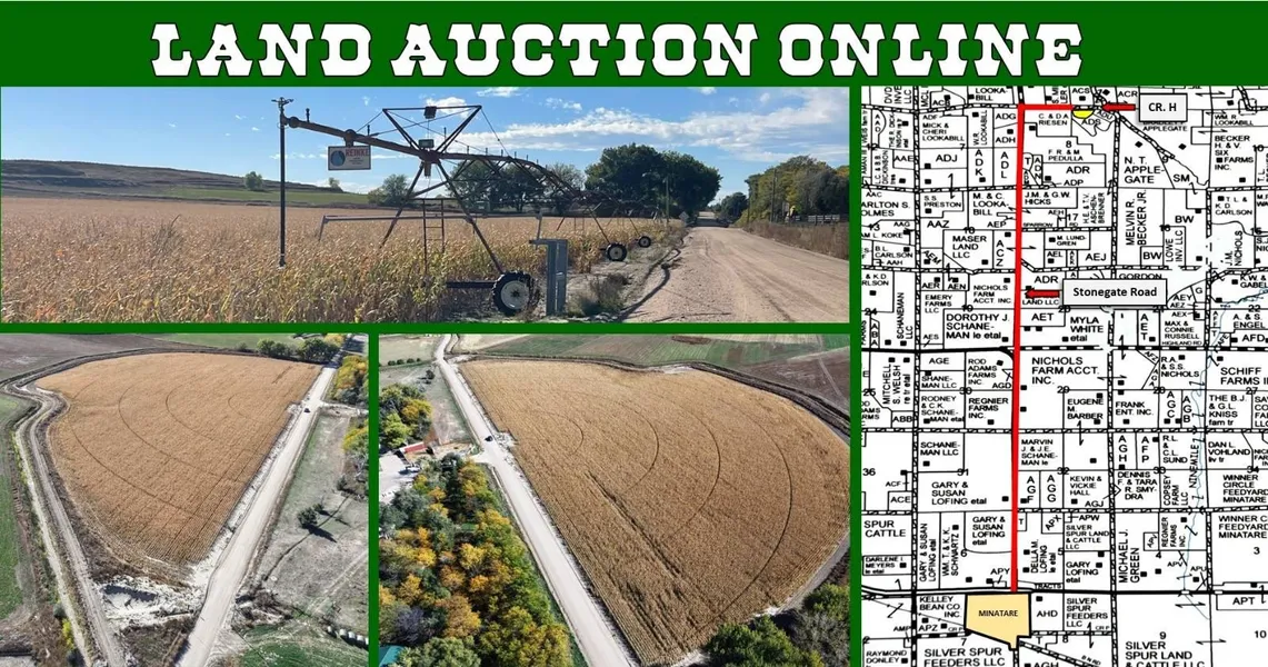 Great opportunity to own your own pivot to produce economical feed for your livestock! The Farm includes 21.34 taxed acres with 20 acres Pathfinder Irrigation Water @ $36.00/acre. This has been a well-maintained pivot with lots of updates in a handy location just 1/2 mile off Stonegate Road. This property is capable of producing all valley crops. The 1978 Reinke 4 Tower Pivot covering 11 acres was put up in 2012 with all new electrical, tower boxes & new center point. The Pivot is powered by a 37.5 kw Roto-phase, a10 hp electric motor pumps 225 gpm through the pivot. Overflow is setup to irrigate south portion of farm with gated pipe. 2024 Real Estate Taxes: $457.46 Legal Description: Part of the NWNE, Part of the NENE Section 8, Township 22 North, Range 53 West of the 6th P. M. Scotts Bluff County, Nebraska. Deposit: $5,000.00 Terms: $5,000.00 down upon being the successful bidder and the balance due at Closing on or before January 14th 2026. The Land is Sold for "Cash", not contingent upon any matter including financing. Financial arrangements must be made prior to bidding. Proof of funds may be required at the discretion of the Broker. Inspections must be made prior to Auction. Buyers are buying the property in as-is condition. Buyer & Seller agree to cooperate should either Party attempt a 10-31 Tax Deferred Exchange. THIS IS AN ONLINE ONLY AUCTION. Interested parties should plan to be Online Bidders and must register to bid and be approved by the Auction Company PRIOR to the Auction. Pre-bidding is open now and encouraged! Bidders must read and agree to all terms and conditions as provided. Winning bidder is required to execute the Purchase Agreement and deliver the deposit for each Tract in the form of wire transfer, cashier's check, personal check, or cash to our office before 5:00 pm on December 5th, 2025. Sale is subject to Seller Confirmation, however, it is the intention of the seller to sell to the Highest & Best Bidder. Announcements prior to Auction closing time supersede any prior advertising, printed or oral.