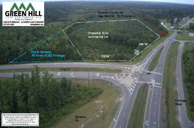 Current use is timber investment and recreational use. Highest and best use is commercial/development. This site is probably the best site for service station/kitchen and truck stop. Front of the property is at main traffic intersection in Screven County. Most all truck traffic passes this location and all traffic going toward Statesboro and most headed to Savannah.