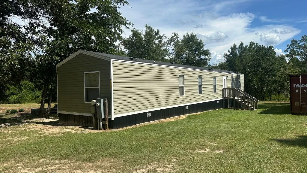 Very private lot at the end of Scrub Oak Road in Sylvania GA. The home is a 2018 16x76 mobile home with 3 bedrooms and 2 baths. The yard has good shade trees, 40-foot storage container, chicken coop and garden area. The land is mostly wooded with 2 trails that lead back to a seasonal creek on the back property line.