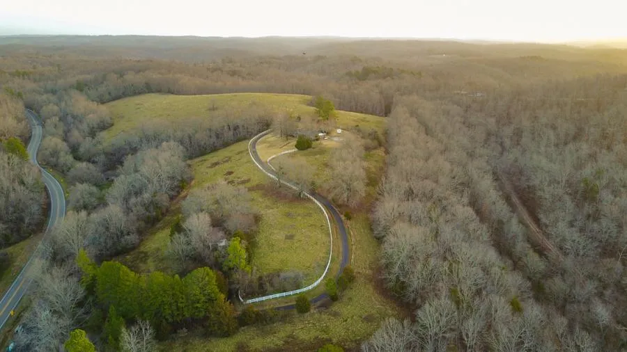 Imagine the convenience of state highway frontage, together with the quiet solitude of a hilltop home on 37 acres in the Ozark Mountains, only 8 miles from the Buffalo River. The home is approached by almost a quarter mile of asphalt driveway, lined with white fencing and a zoysia lawn.